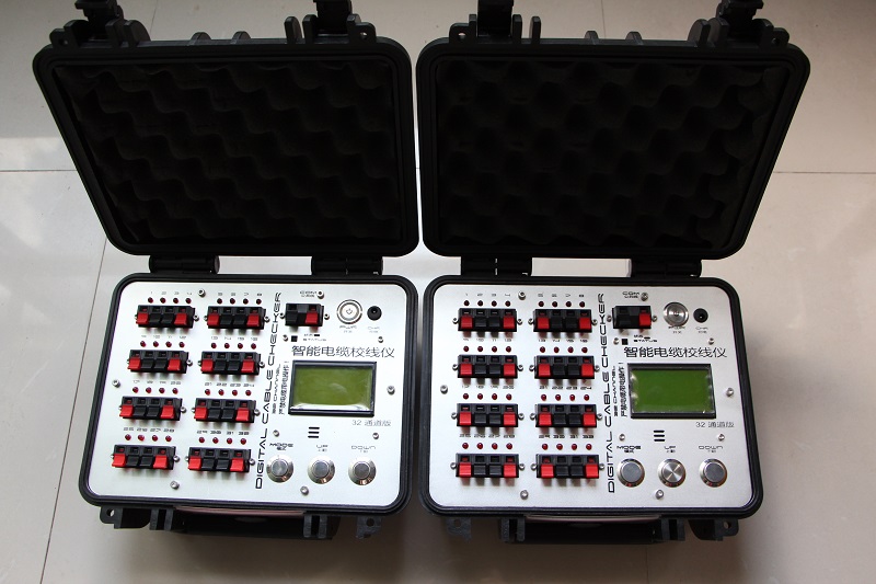 智能多芯電纜分析儀,采取最新嵌入式編程,數(shù)字化編解碼技術(shù)以及多種錯誤偵測技術(shù),實現(xiàn)了快速高效的多芯電纜分析檢測核對工作,智能電纜分析儀用于自動化施工過程中對多芯電纜進行8秒快速尋線校線操作,支持1500米線間短路、接地、斷路檢測及報警, 分析儀需要成對使用,單體可進行收發(fā)模式切換,本品標準設(shè)計為32口,支持16口,48口,64口定制。